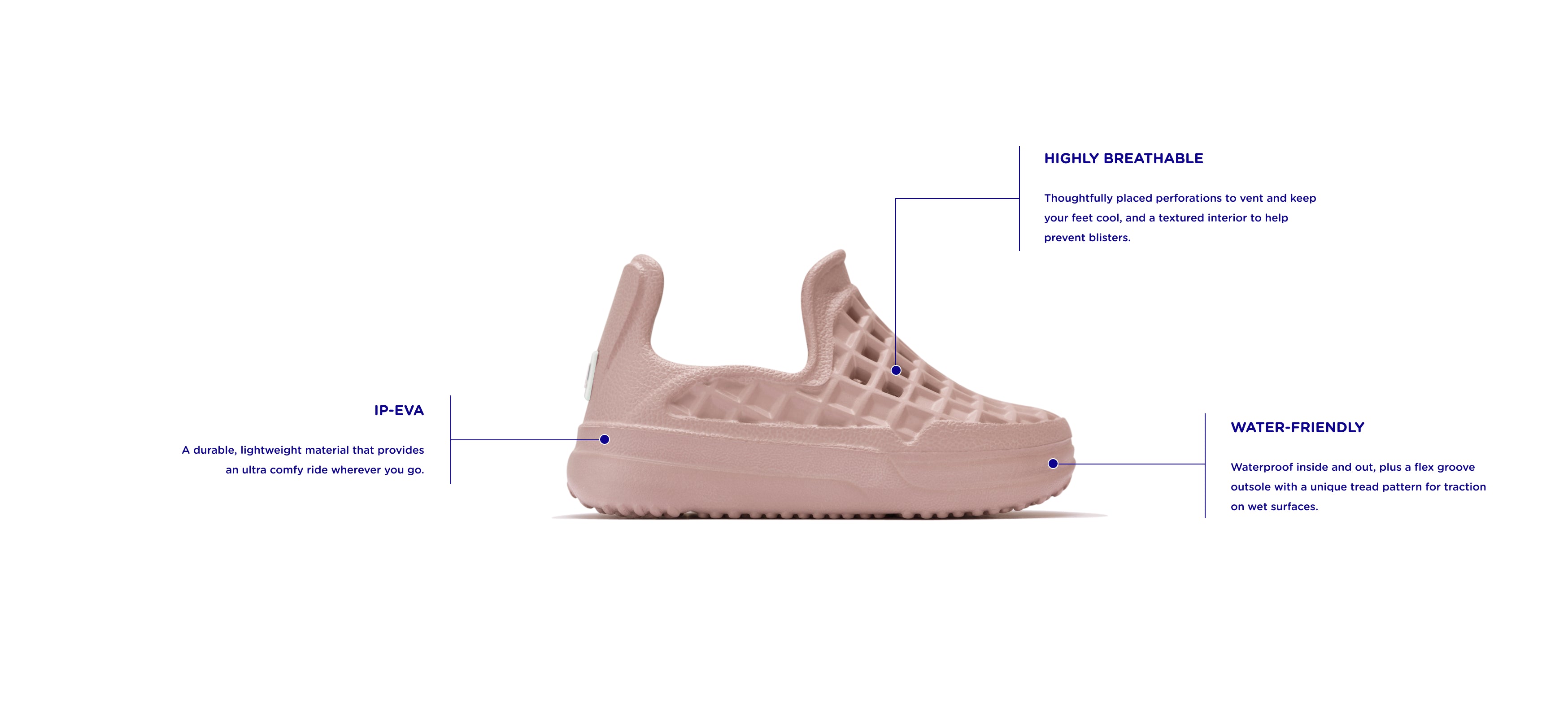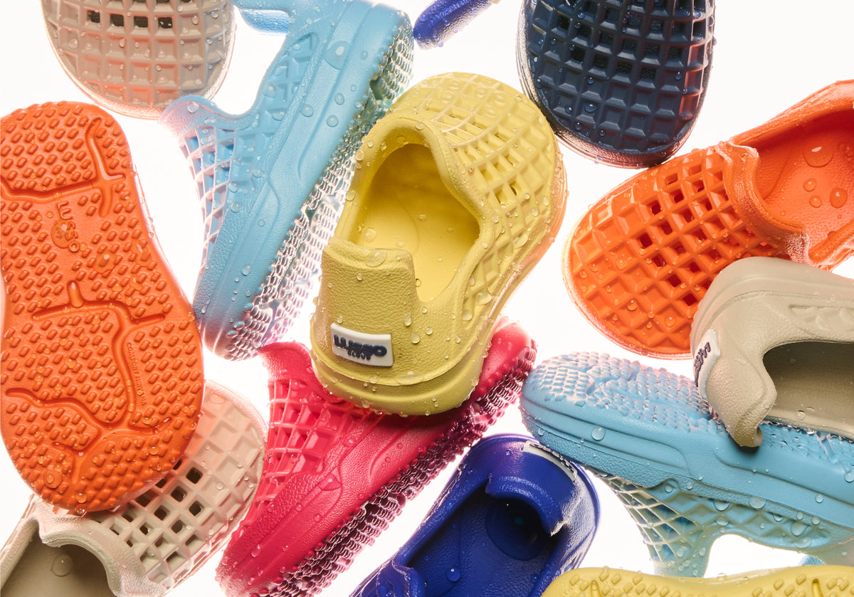 Our first slip-on shoe for kids is water friendly — because messes happen. Lightweight and breathable, with molded arch support and textured interior to help prevent blisters. The flex groove outsole has a unique tread pattern for traction on wet surfaces.